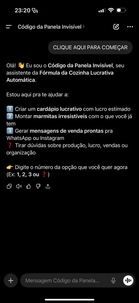 Enquanto muita gente tenta lucrar copiando receitas da internet e chutando preços, aqui você segue um sistema que calcula seu lucro antes mesmo da panela esquentar— e ainda monta cardápios irresistíveis com o toque estratégico da inteligência artificial.